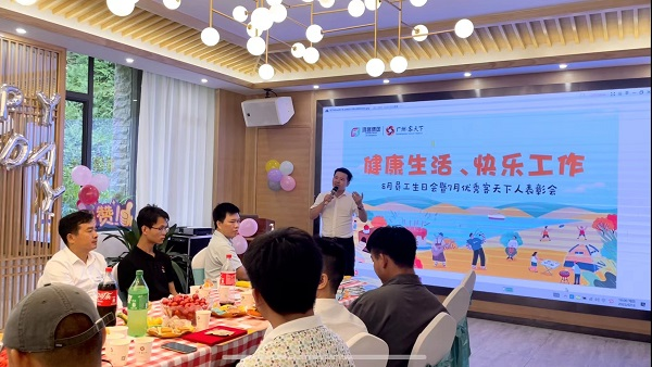 健康文旅中心总监魏正强在活动过程中表达了对优秀客天下人及对生日寿星们的祝贺及祝愿。他表示,广州客天下当前的快速发展离不开全体家人们的辛勤付出,希望未来的每一个春夏秋冬,我们继续砥砺前行,共同实现集团更宏大的成就及梦想。